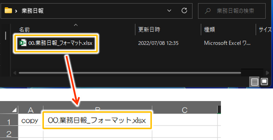 次に、B1セルにコピー元となるフォーマットのファイル名称を入力します!