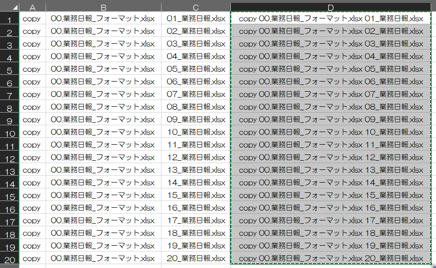 最後に、D列を全て選択して『ctrl』+『C』でコピーします!