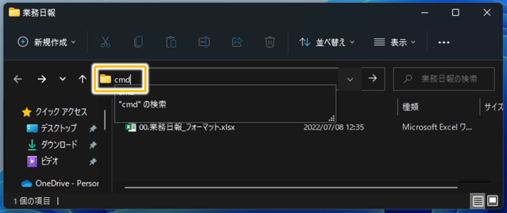 開いたフォルダのアドレスバーに『cmd』と入力して『Enter』を押します!