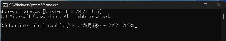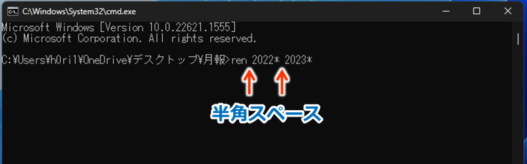 『ren』と『2022*』の間と『2022*』と『2023*』の間に半角スペースを入れる事