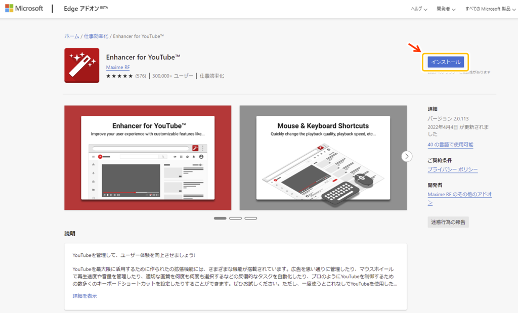 Enhancer for YouTube™ – Microsoft Edge Addons