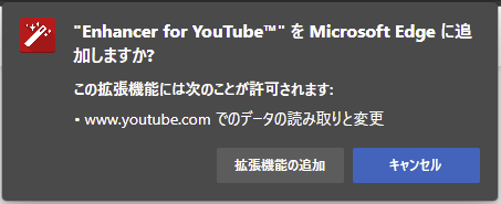 出てきたダイアログボックスの『拡張機能の追加』をクリック!