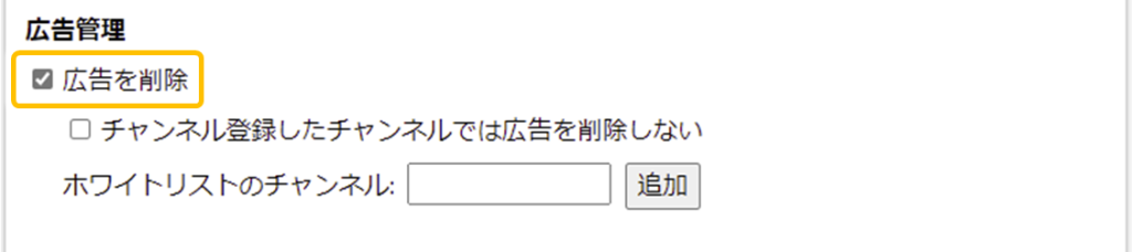 開いた設定画面で『広告を削除』にチェックを入れて下さい!